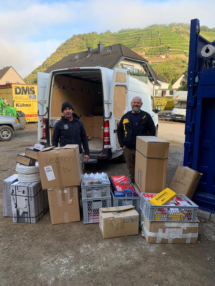 Wir waren vom 03.09.2021 bis zum 05.09.2021 im Flutkatastrophen Gebiet „Ahrtal“. Dort übergaben wir den organisierten Helfern vom Baustoffzelt Kaiser Walporzheim Sanitärartikel, Maschinen und Kinderspielzeug.